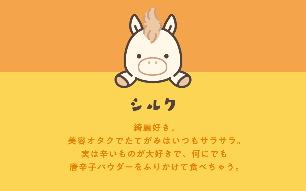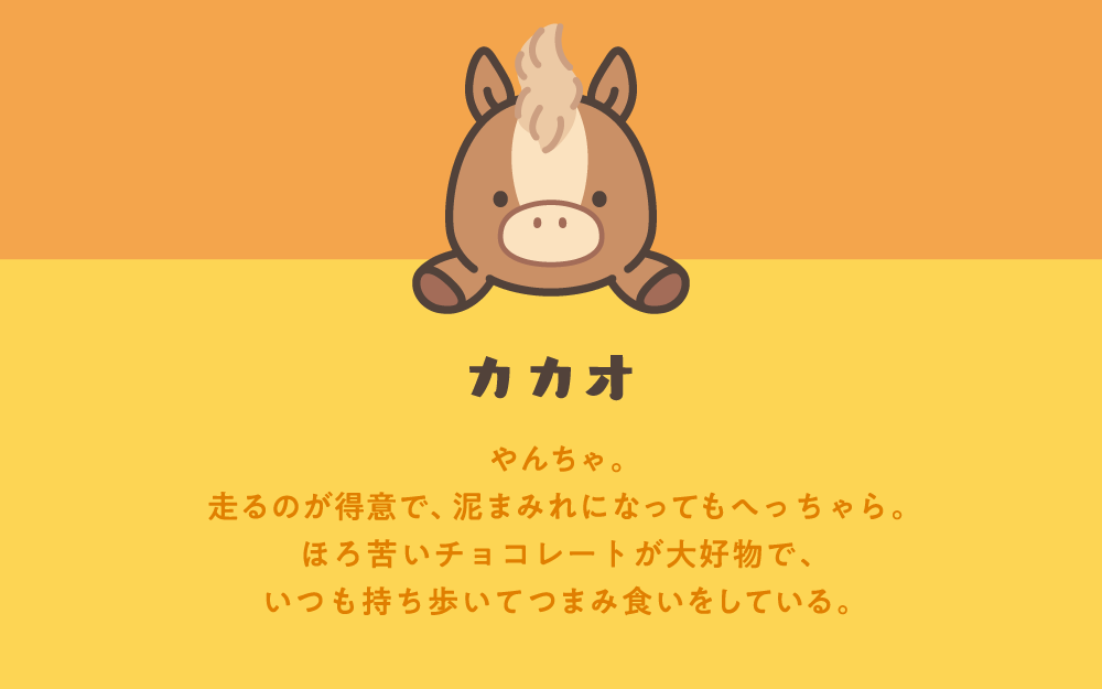 『ふんばるず ウマ』は、茶色の毛並みの「カカオ」と白色の毛並みの「シルク」の2種がラインナップ。「カカオ」と「シルク」と一緒なら、あなたの運気がもっと上がるかも。